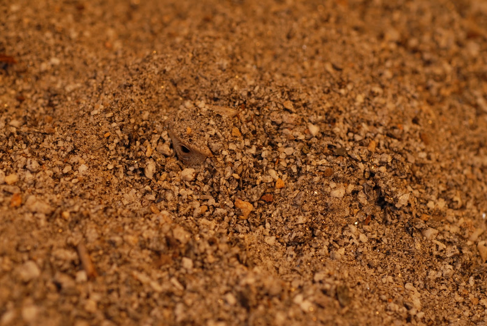 Nach nächtlichem „Taufall“, simuliert durch einen Ultraschallzerstäuber mit 1 Stunde Betrieb morgens zwischen 4 und 5 Uhr, konnte ich bei P. asio Gewichtszunahmen von 0,15 bis 0,2 g gegenüber dem Gewicht vom Vorabend feststellen. Futteraufnahme zwischen den Wiegungen war nicht möglich. Auffällig war die deutliche Zunahme der Farbintensität und des Kontrastes, wenn die Echsen morgens aus dem Sand kamen. Der Sand war am Abend trocken und wurde durch den Zerstäuber zwar dunkel, aber nicht nass glänzend. Die Zerstäubung bewirkt eine direkte Erhöhung der Luftfeuchte und verteilt sich durch feinperligen Niederschlag auf ein Oval von ca 15 cm Breite und 35 cm Länge. Tiere, die in diesem Bereich eingegraben waren, zeigten die Gewichtszunahme, Tiere ausserhalb zeigten keine messbare Zunahme. Wenn die Echsen morgens bei beginnender Erwärmung durch die Spots aus dem Sand herauskamen, war der Sand wieder trocken.